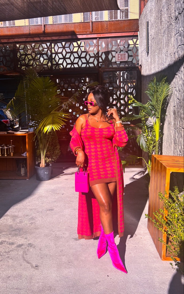 Fashion forward and sexy. This cardigan and dress combo is a must have. Turn heads as you step out in style