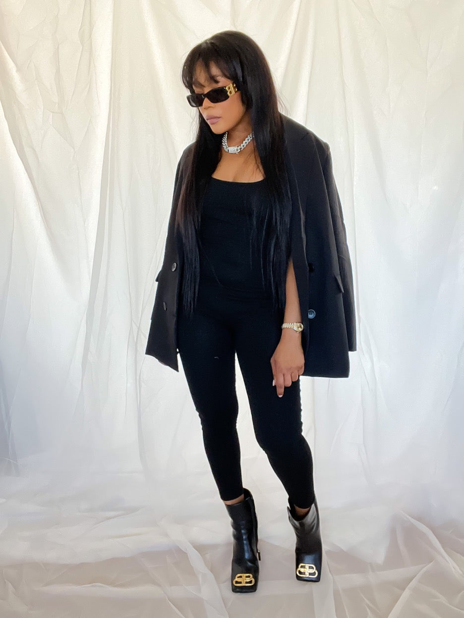 A closet Staple. We all need a basic cami jumpsuit in our closet, wear it alone or style it with other items and take it from basic to chic.