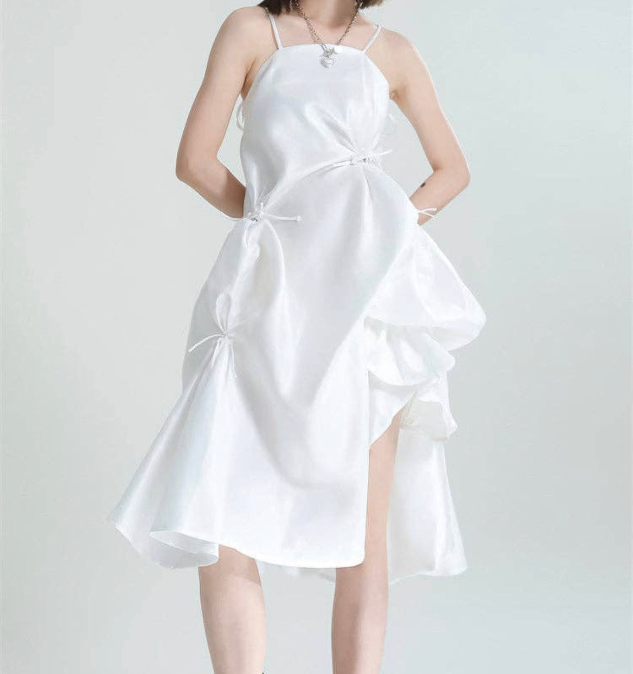 You’ll be on cloud 9 wearing this dress with the puff cloud like details and the asymmetrical hem line you’ll be sure to turn heads.