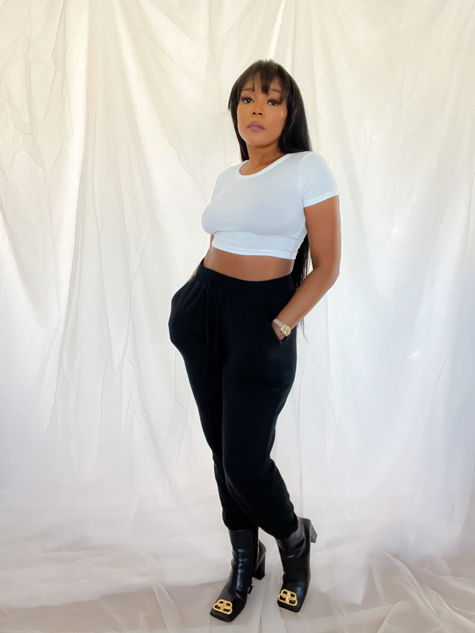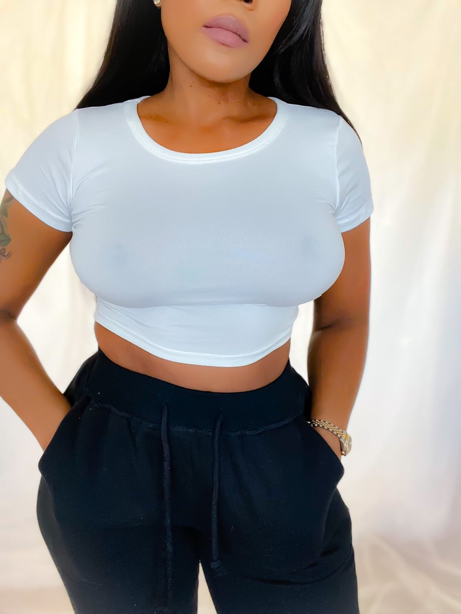 A closet basic and an outfit helper, this crop baby T's can be worn with your fave bottom by itself or as undergarment.