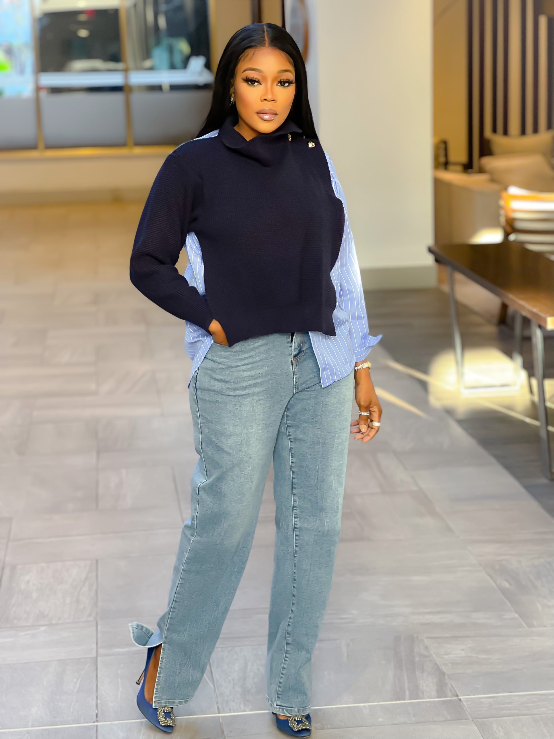This sweater that's also a shirt its a perfect blend of chic and trendy, you can dress it, dress it down and also wear it to the office.