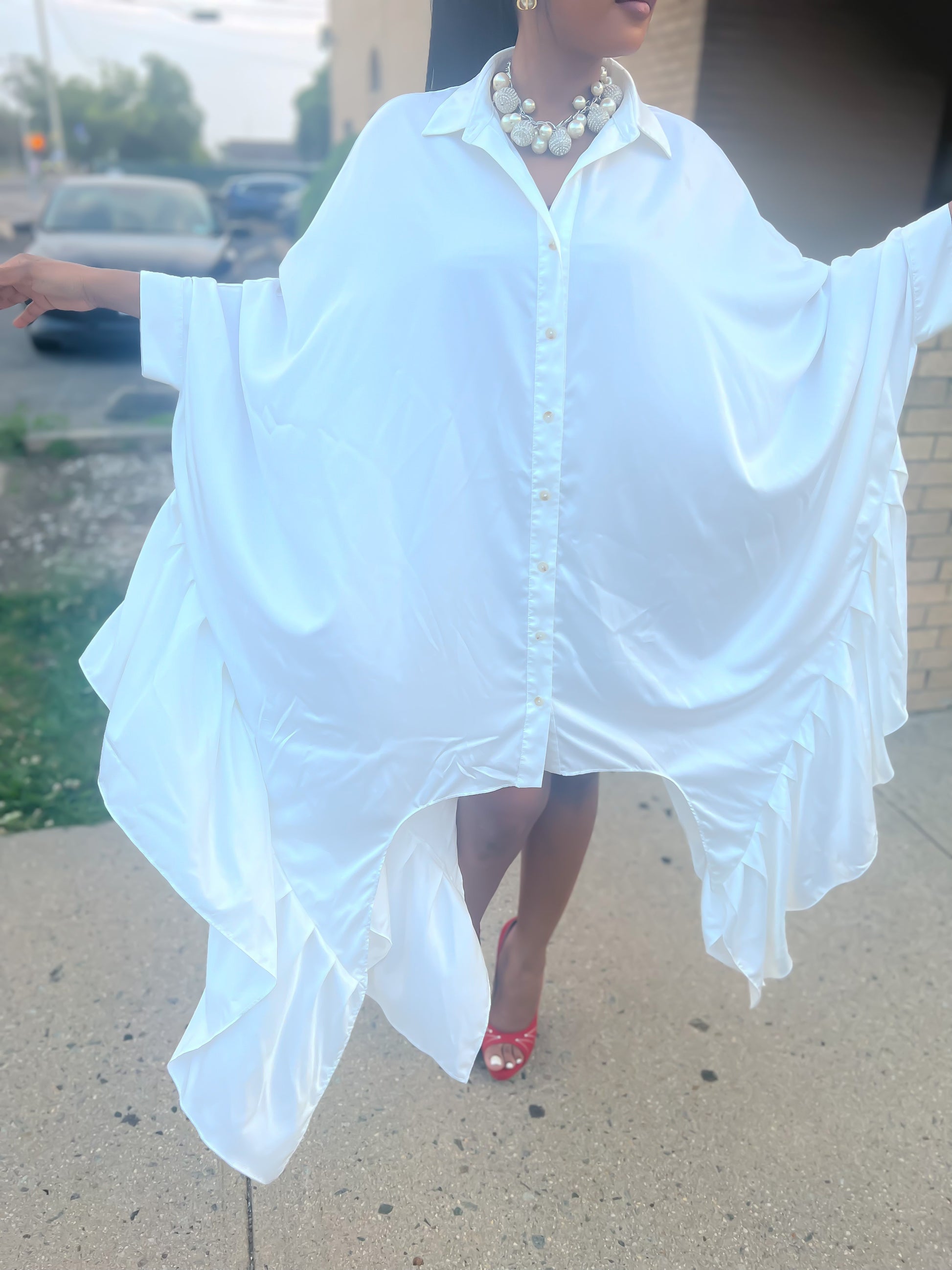 This flowy and comfy cape dress can be works as a dress or a cover up. Tent cut and roomy