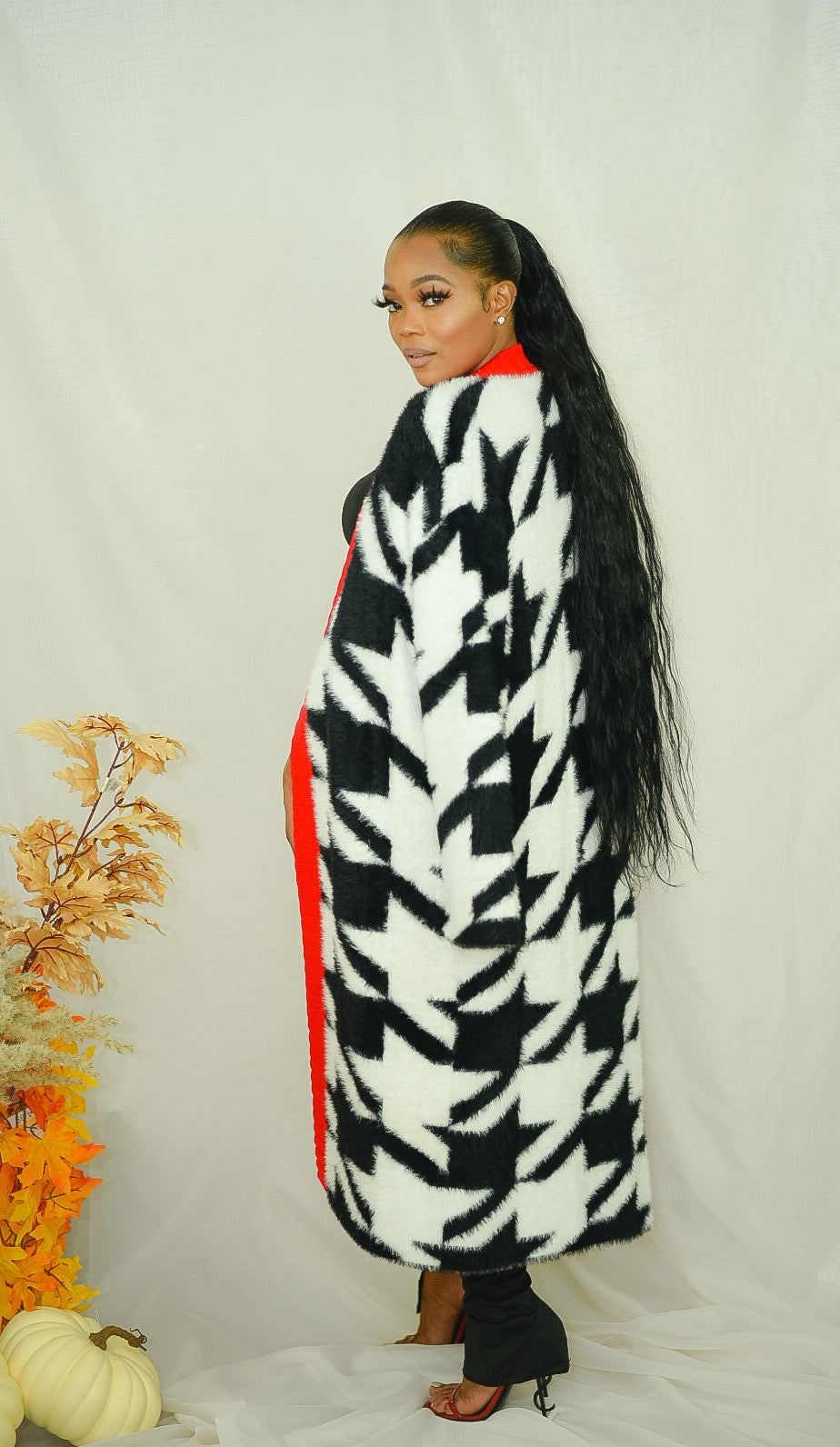 fashion forward, fuzzy and cozy, this long soft and warm cardigan will feel at home in you closet, just what the season ordered.