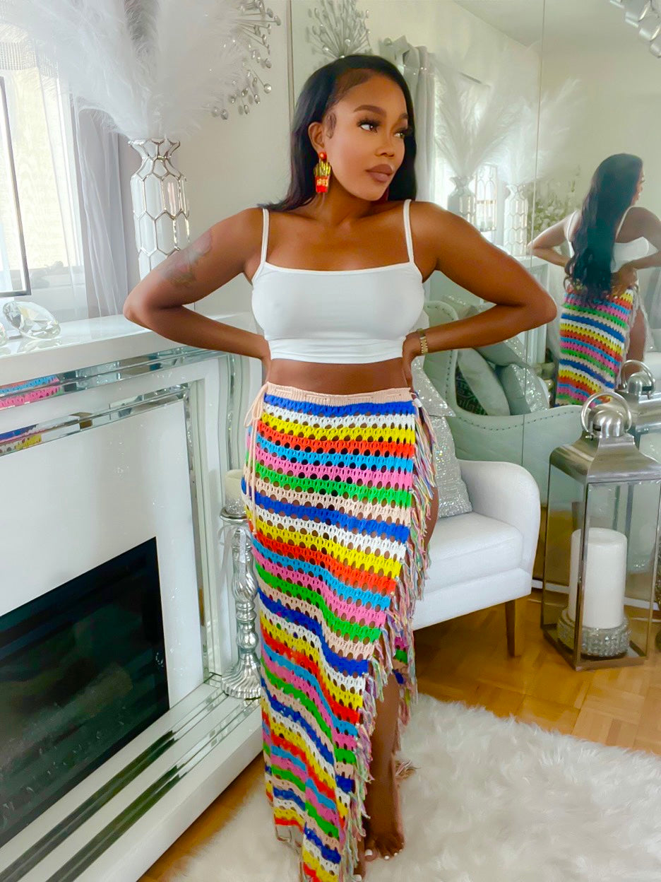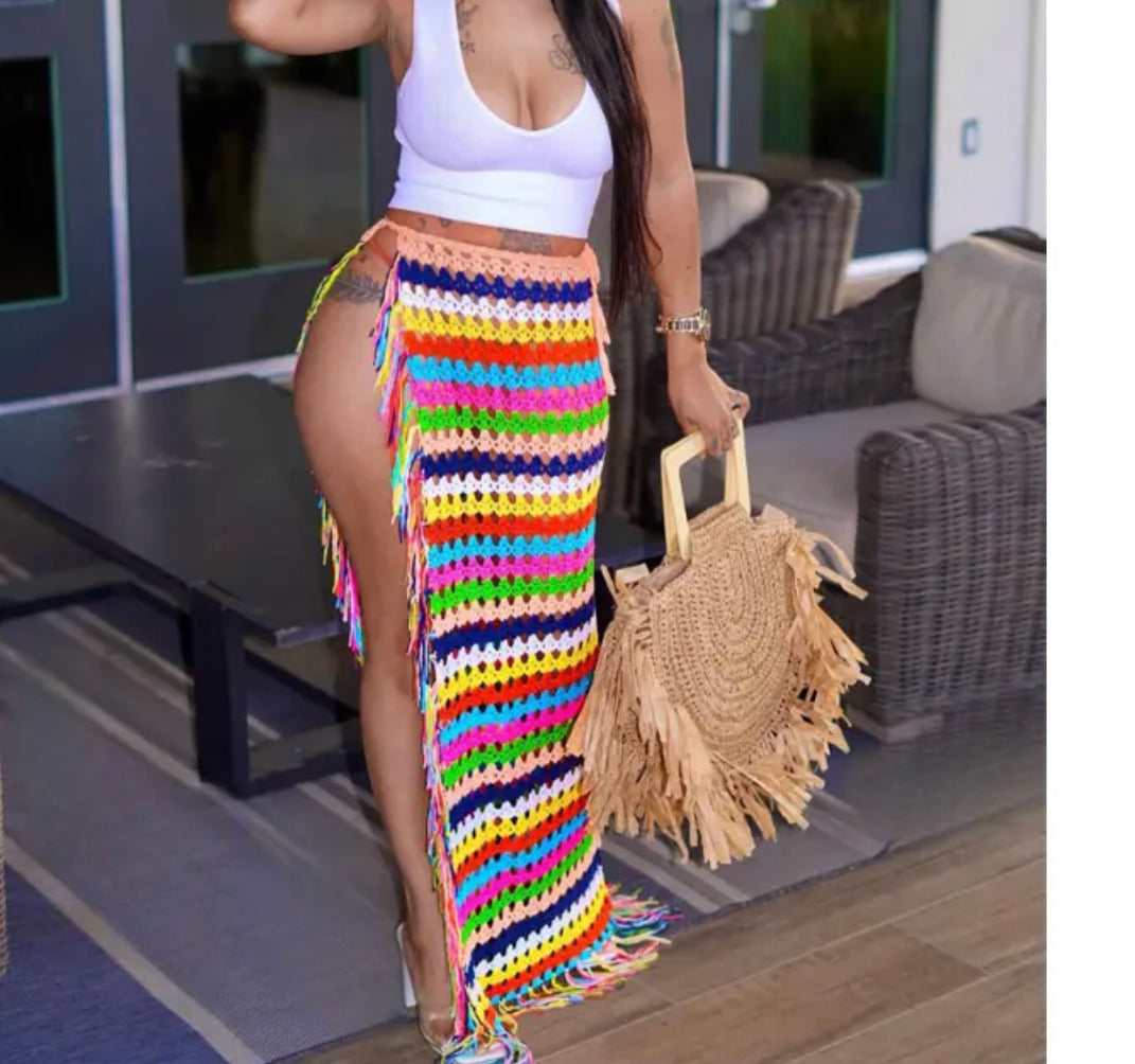 Fun colorful and bright. This maxi crochet cover up skirt can’t wait to be on vacation, poolside or at the beach grab one for a pool party this summer.
