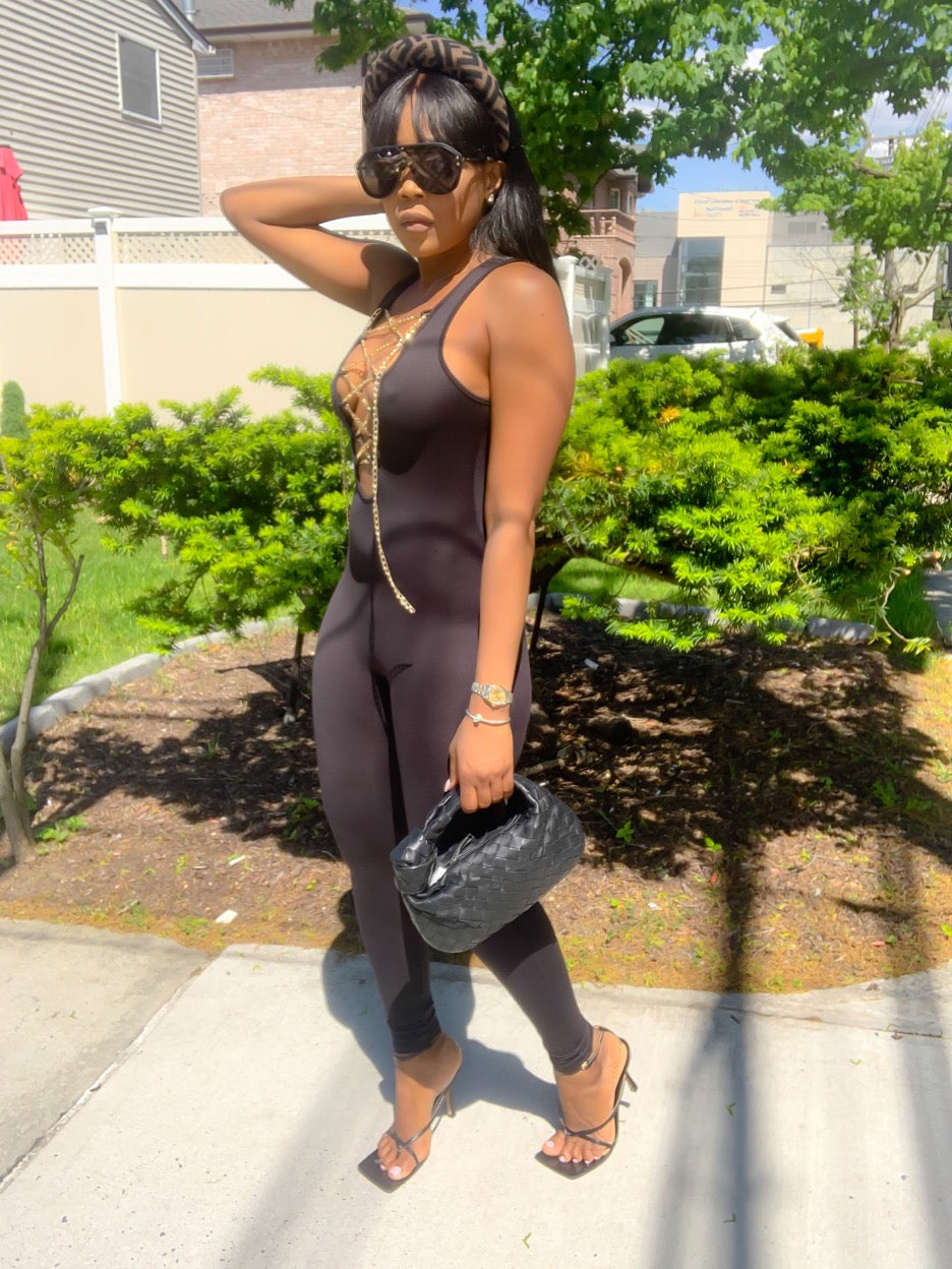 Sleek and sexy, this chain detail bodysuit takes the guess work out of getting dressed, just add shoes and go.
