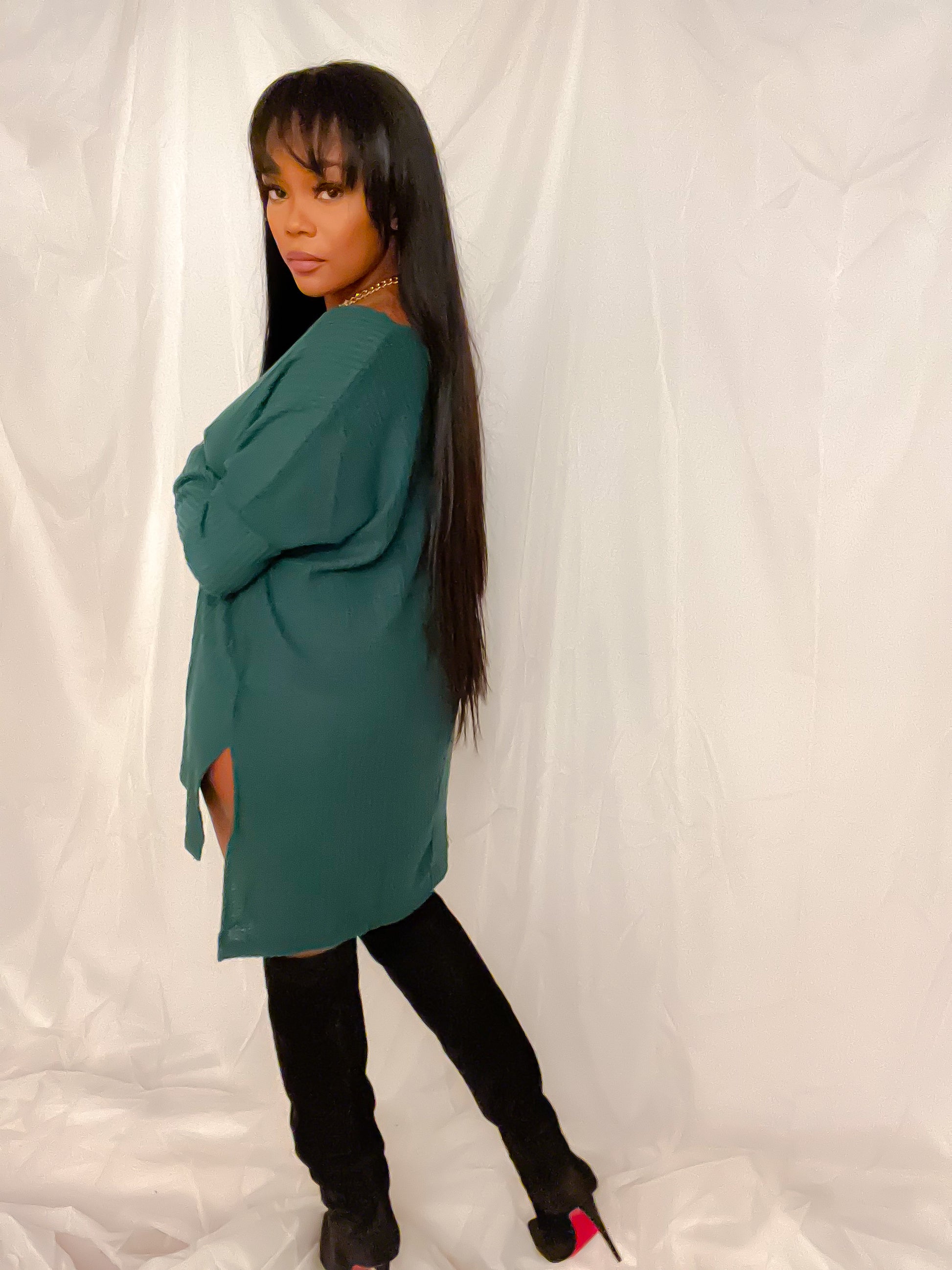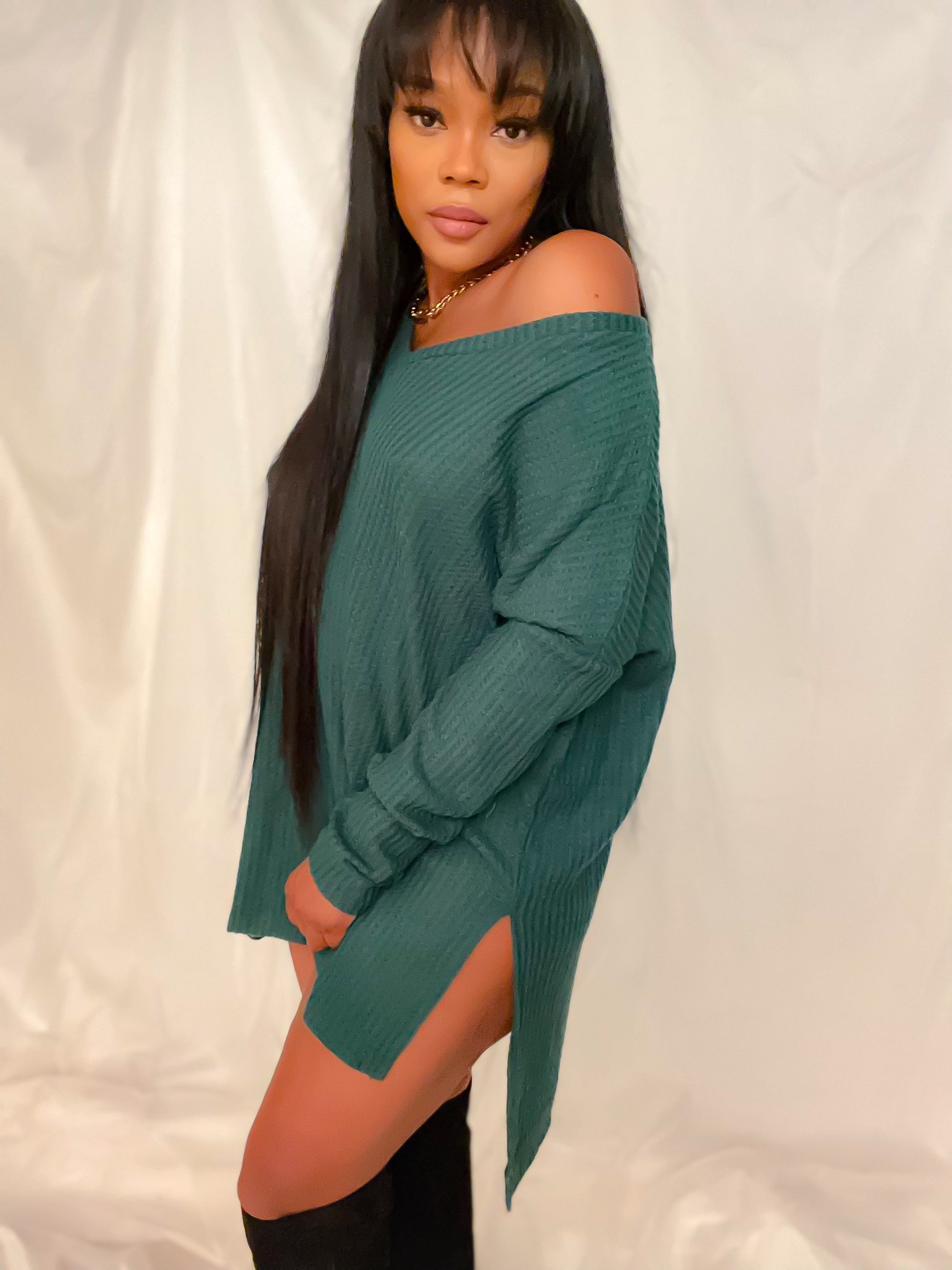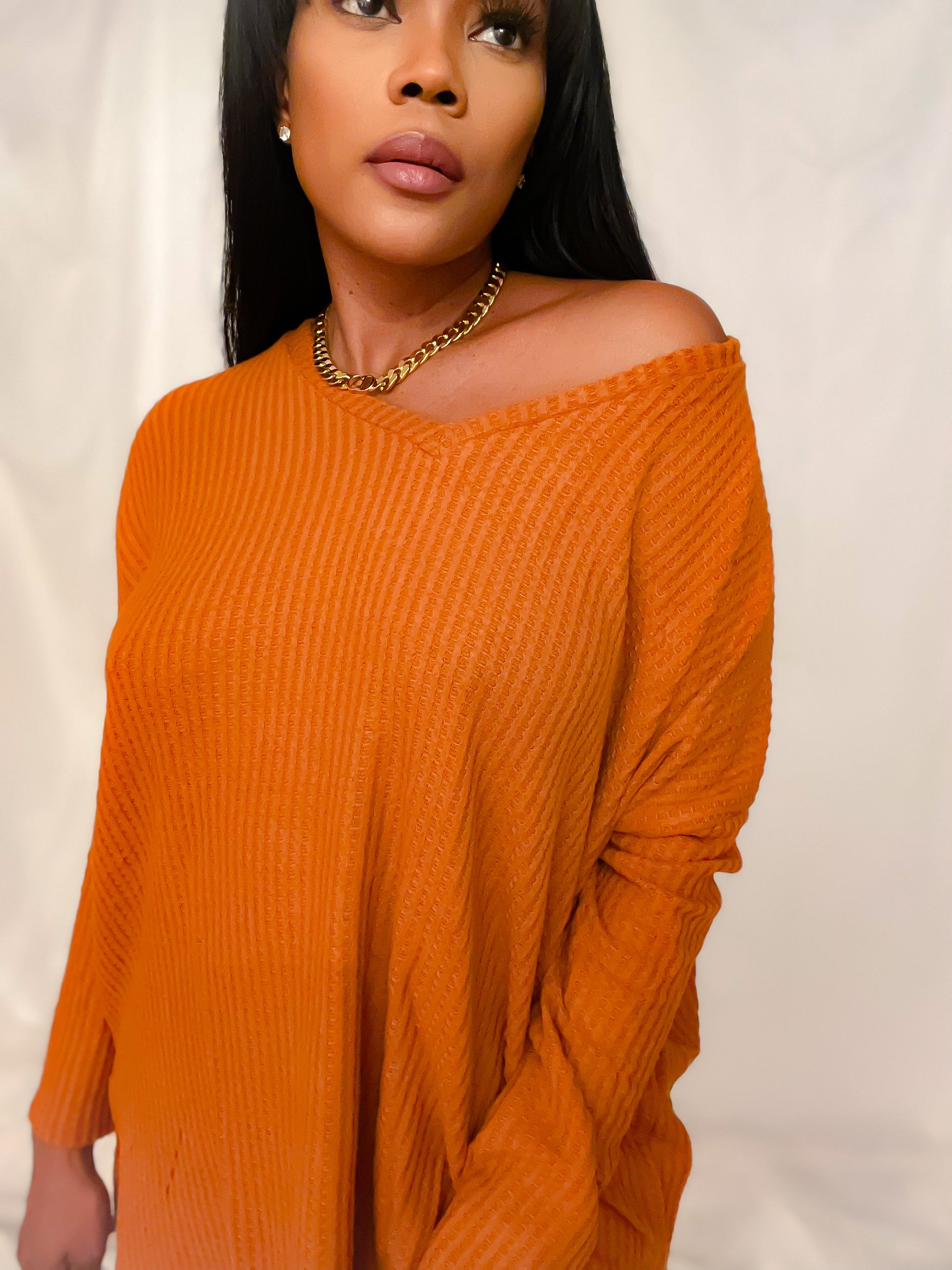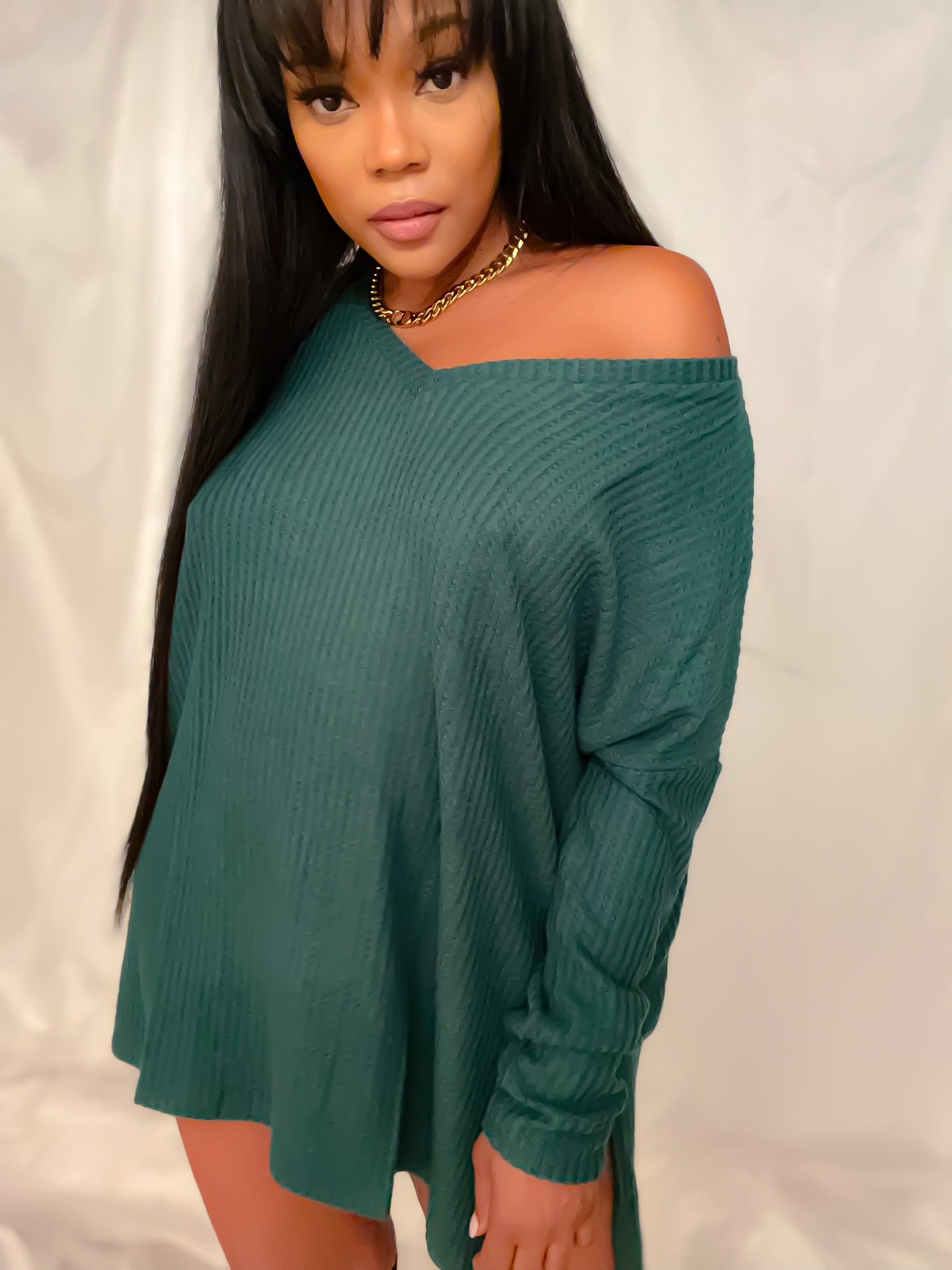 This cozy oversized light weight ribbed sweater is a closet must have, wear alone or with your fave bottom.