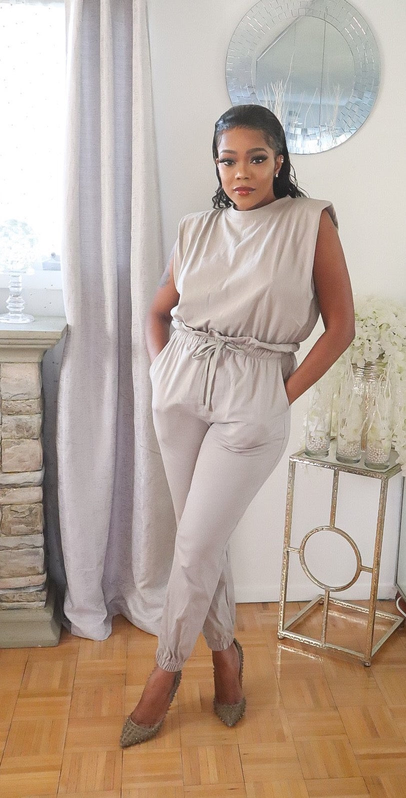 Shoulder pads make everything better, this casual and comfy jumpsuit will be a closet fave, this piece takes the guess work out of getting dressed.