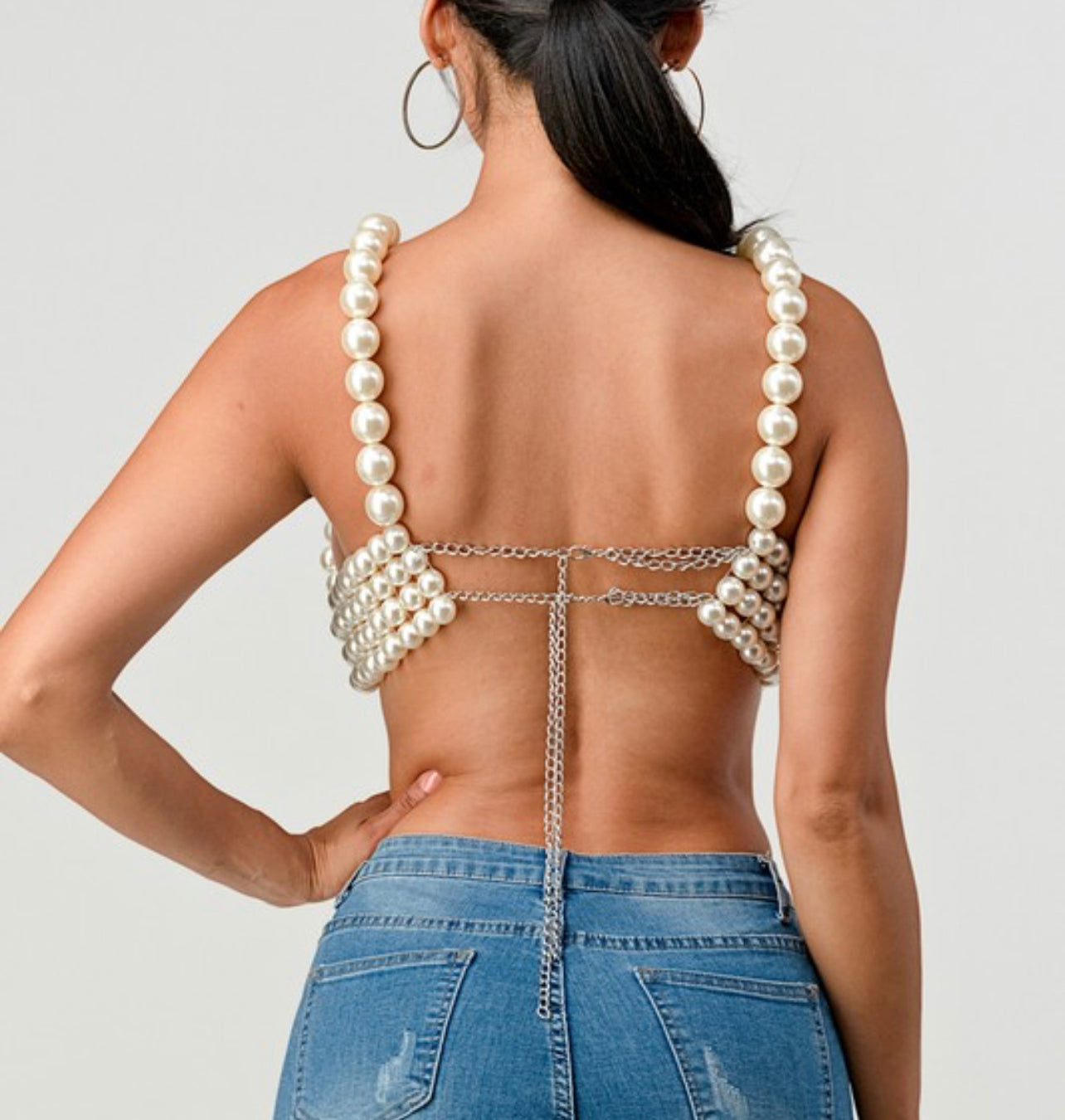 Style- pearl beaded bralette with chain back closure