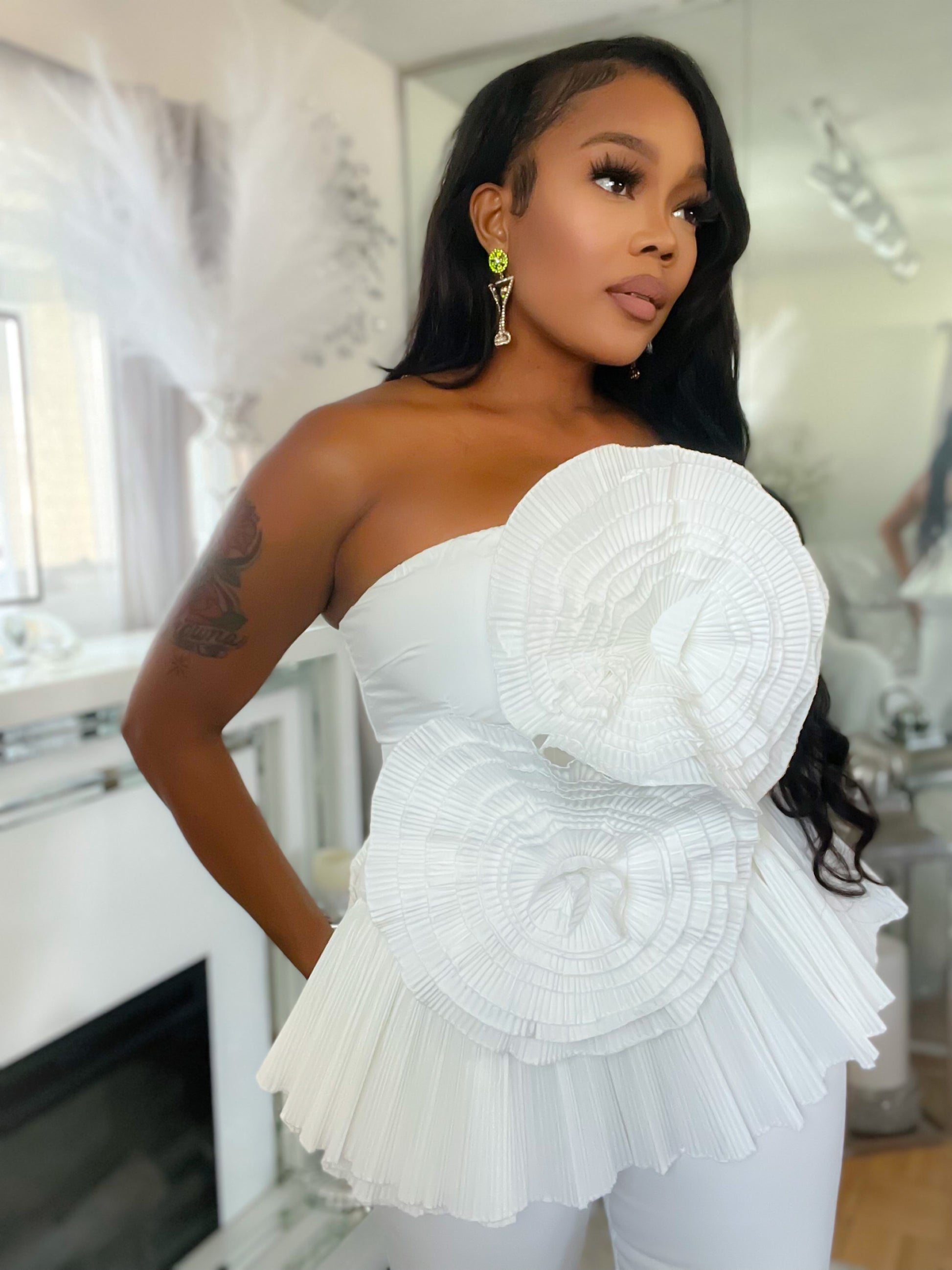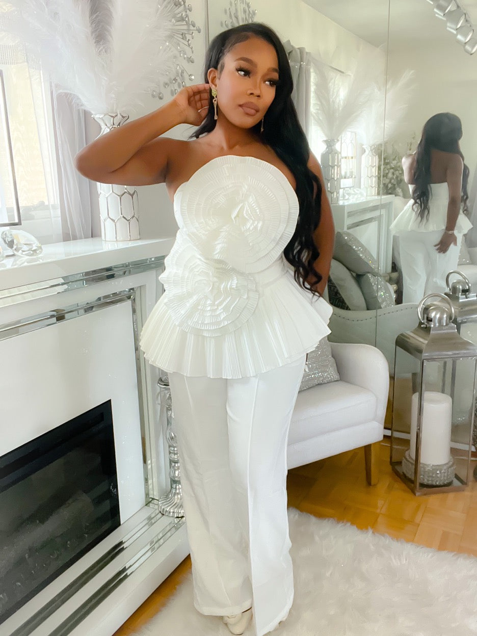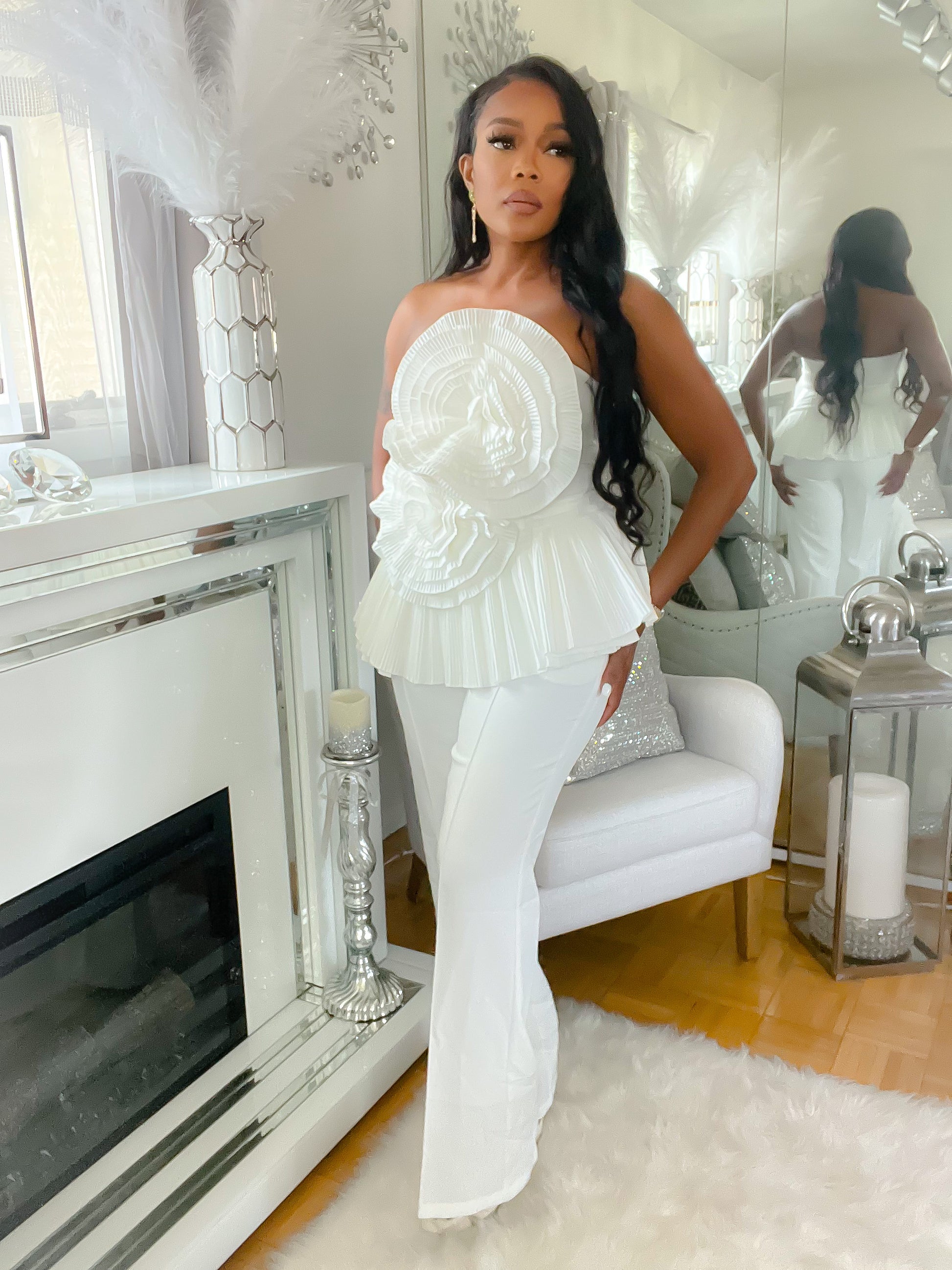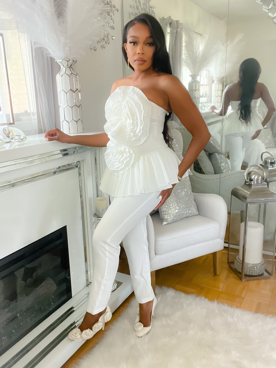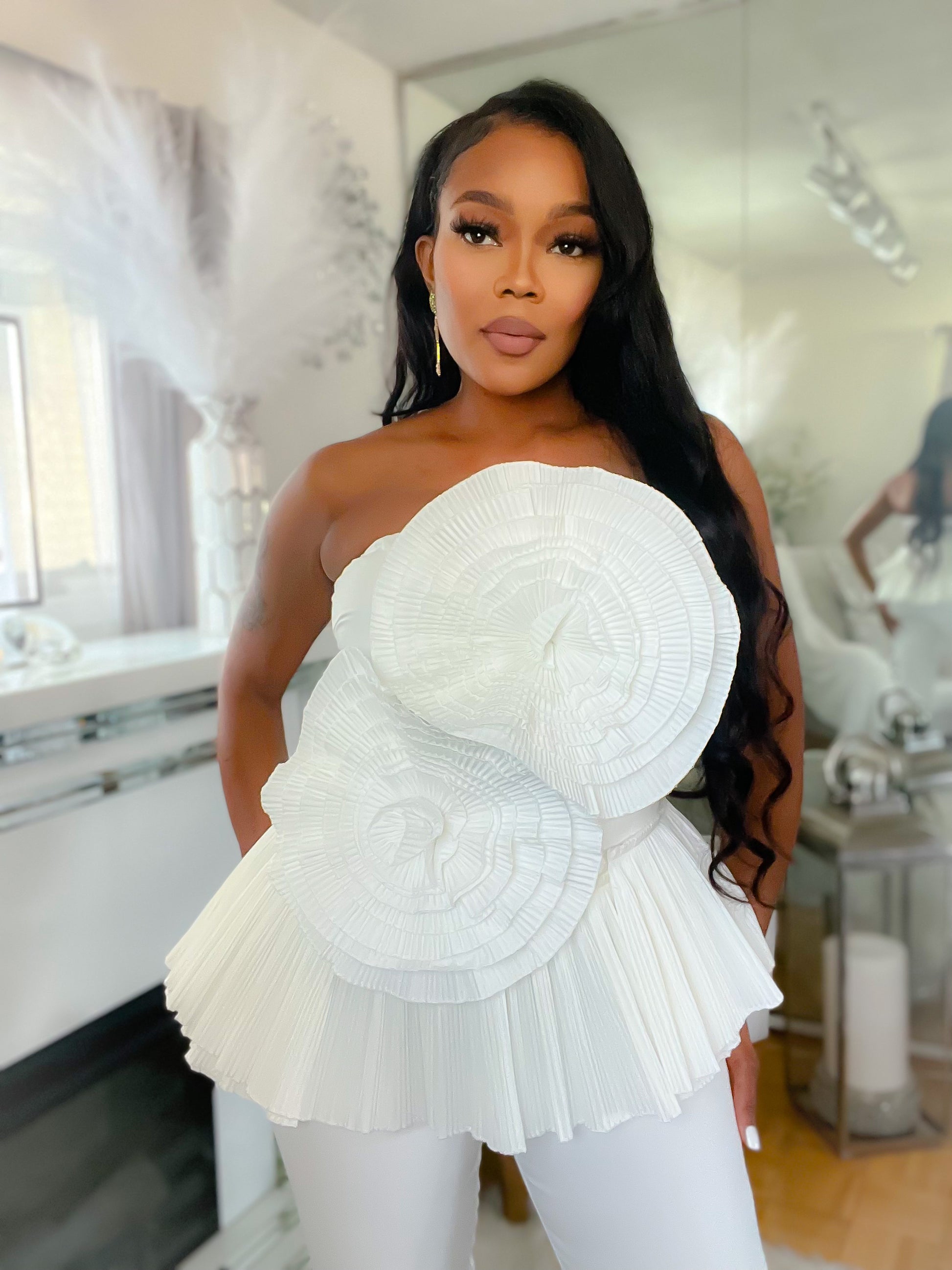 Fashion forward and on the 3D floral trend this pleated 3D top will go well with any bottom and take the look to the next level yes it’s that good and you must have it.