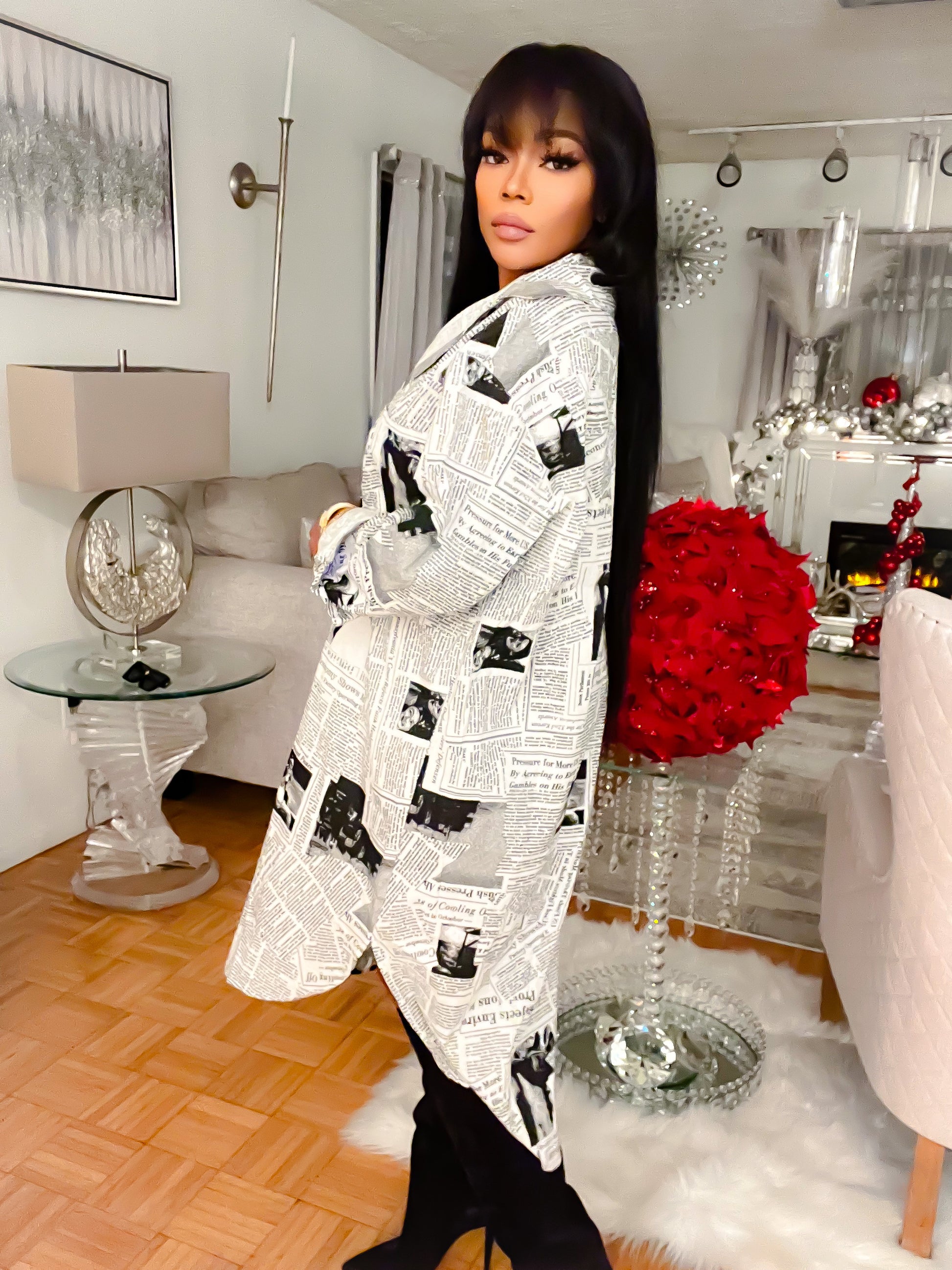 This news paper print short dress is a fashion lovers dream. Wear as a dress or as outer wear over a basic out and take it to chic.