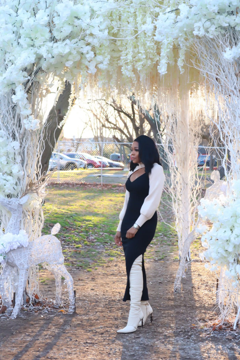 Cozy and sexy, this black ribbed maxi dress features a side slit and spaghetti straps for a sleek simple and sexy vibe.