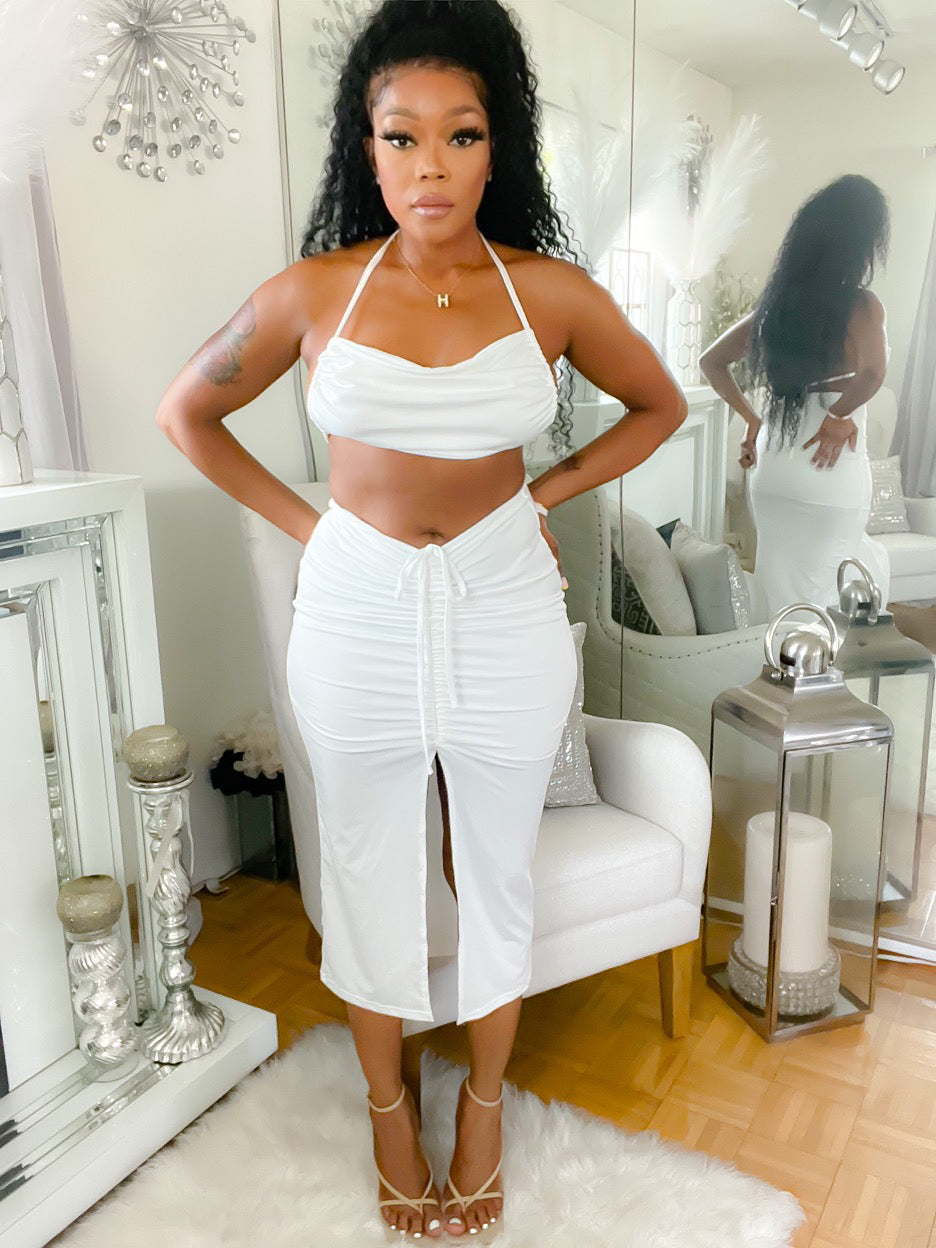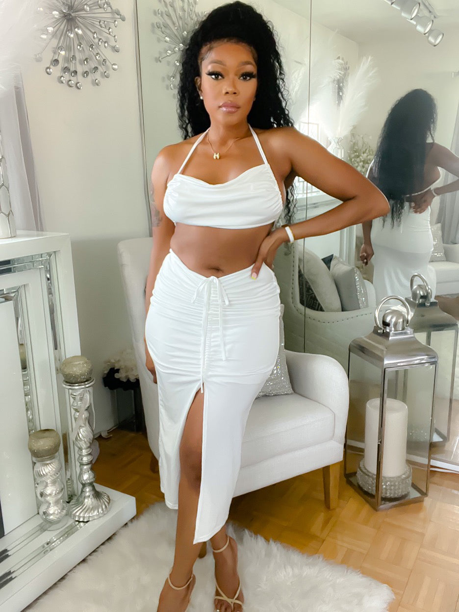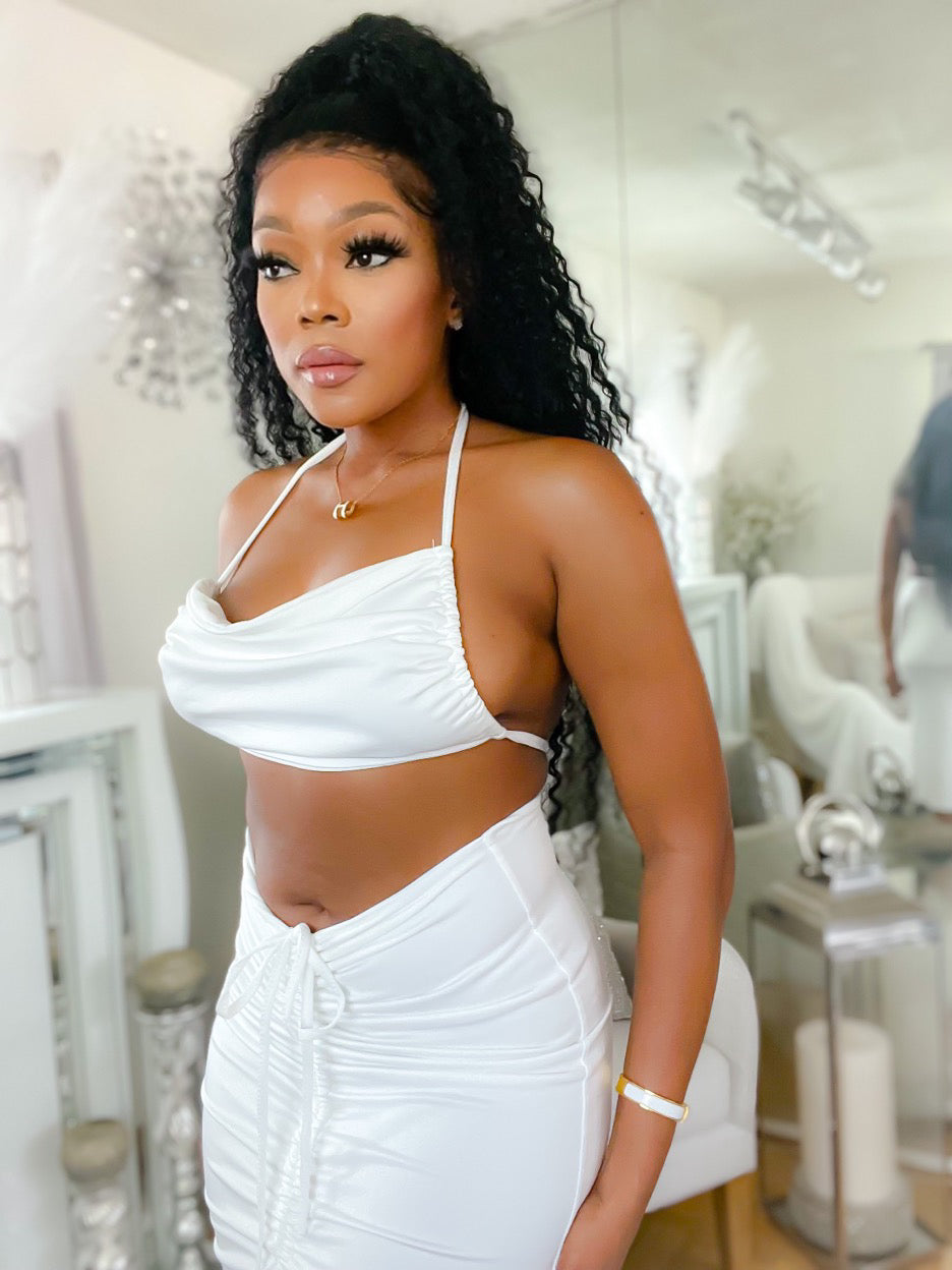 Style - two piece set with adjustable string skirt and adjustable alter crop top