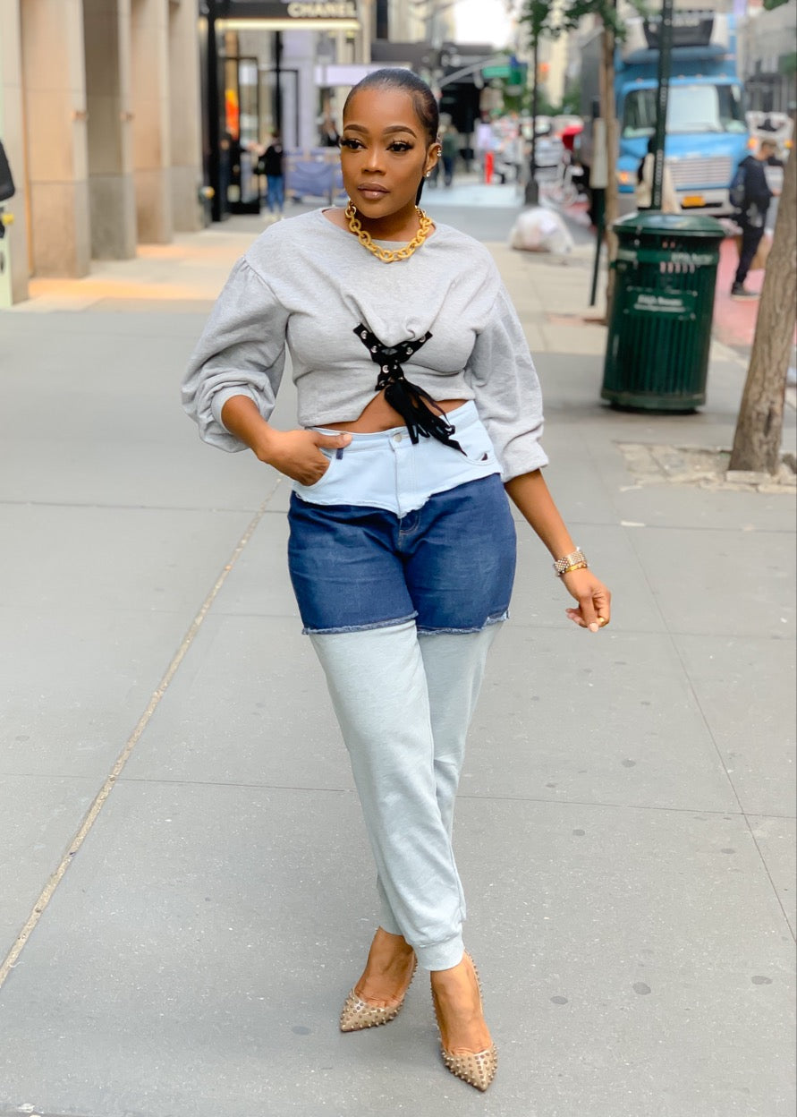 Sweats and denim joggers