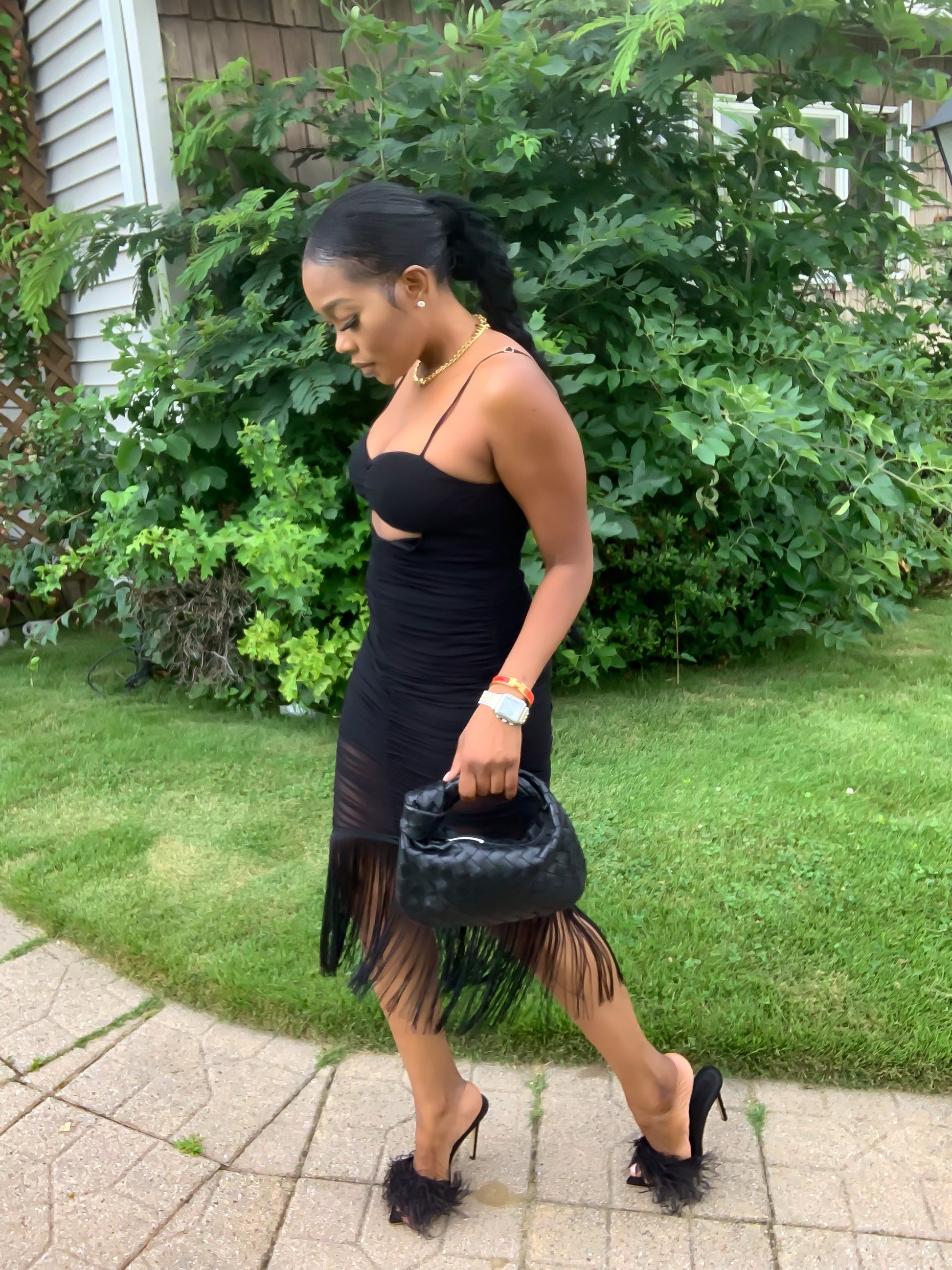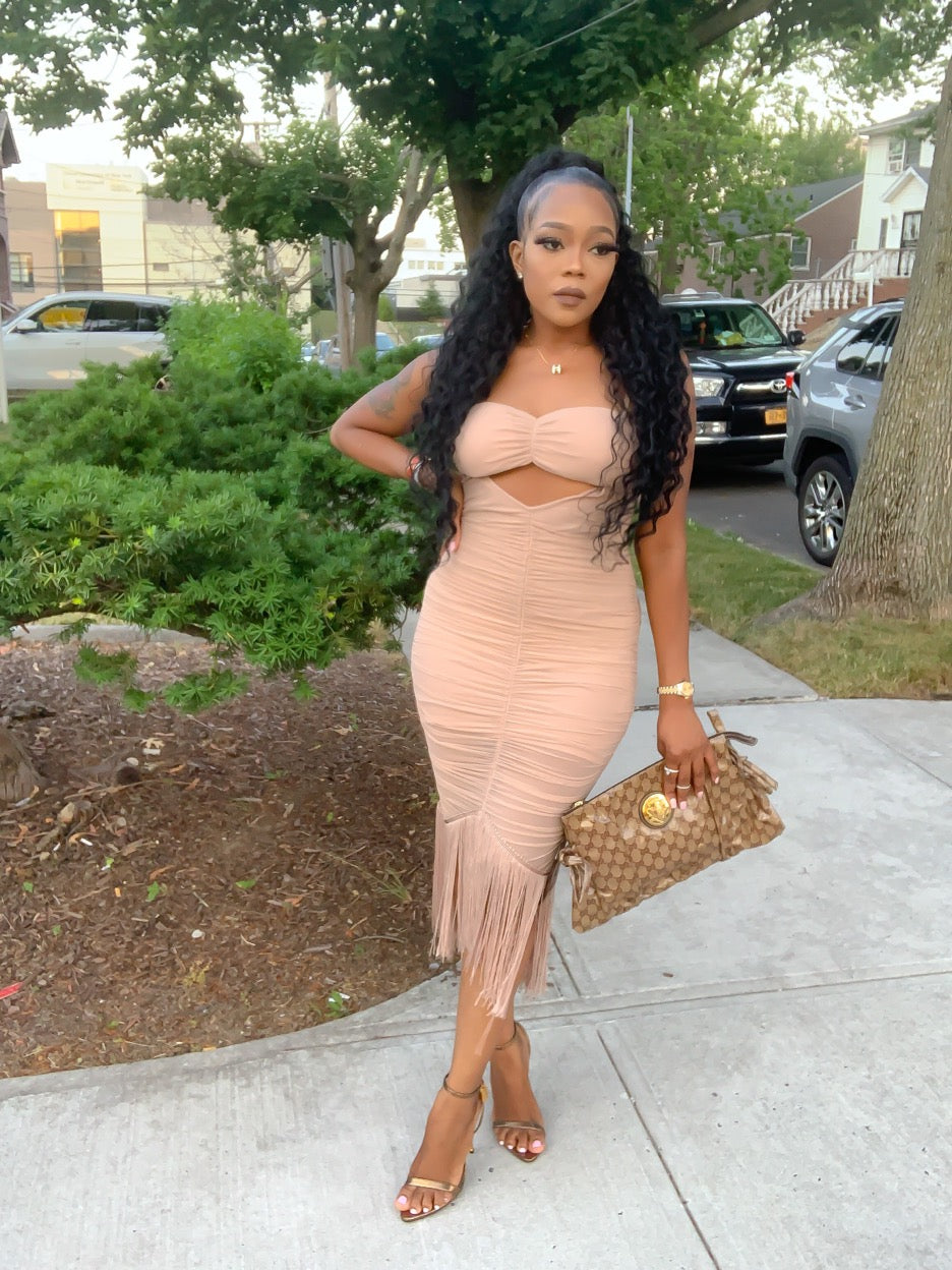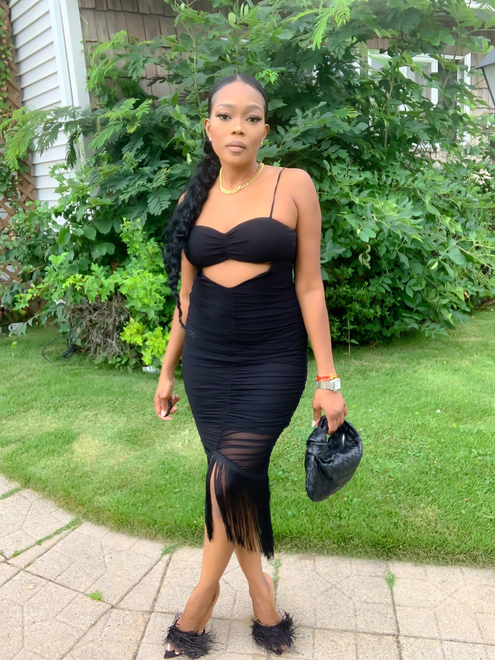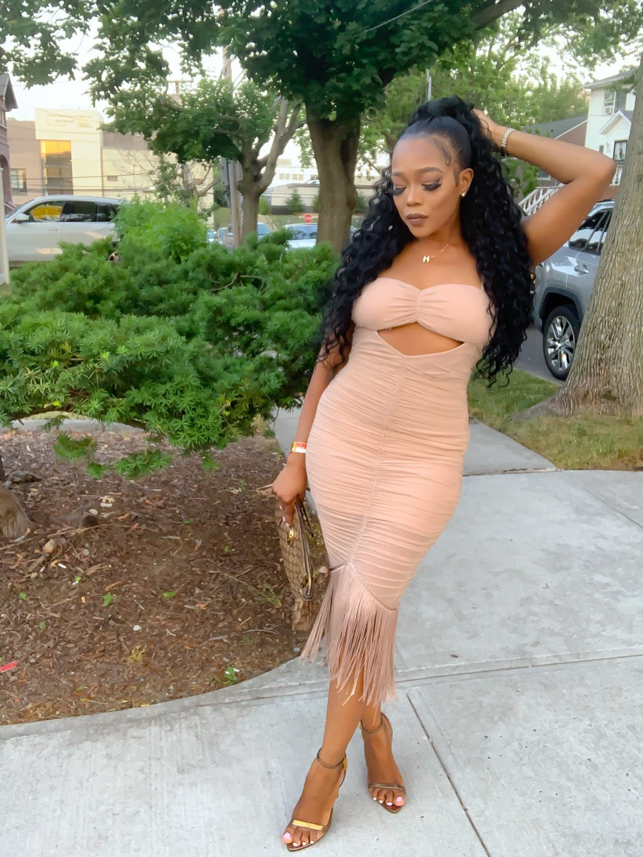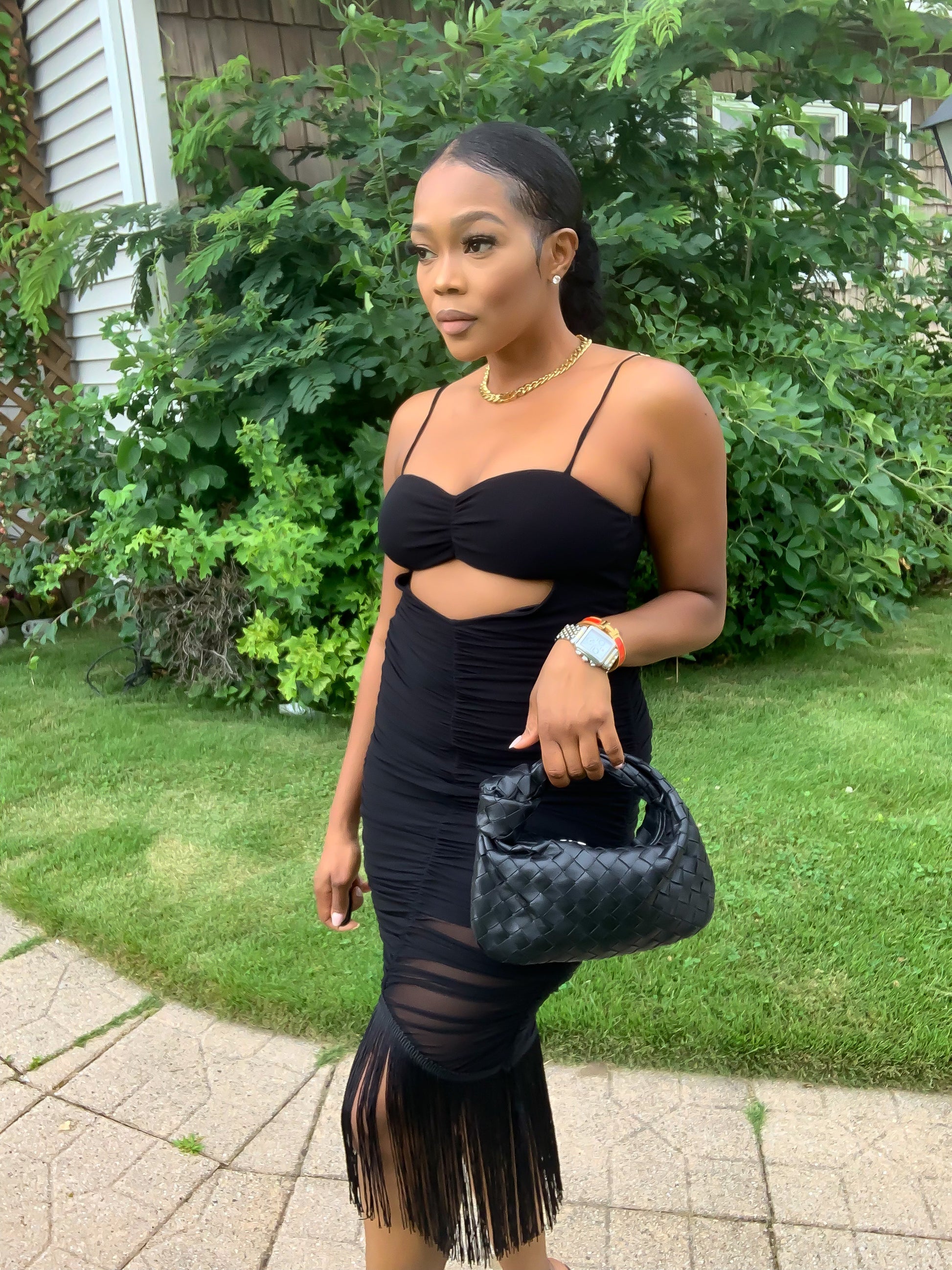 The perfect dress is just perfect, curve hugging material snatch the waist, double lined, sheer, fringe and ruched.