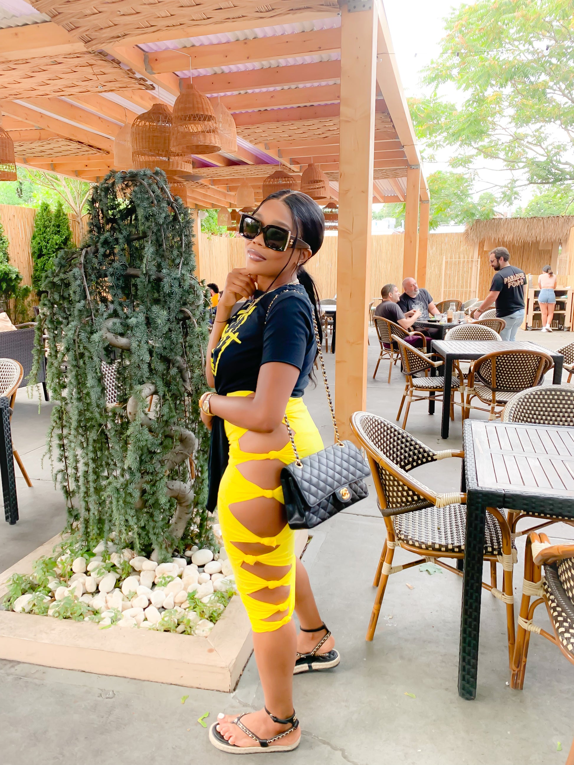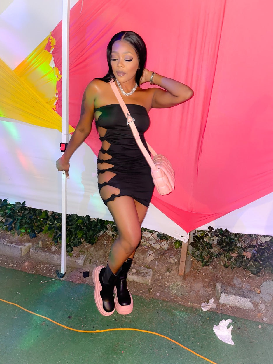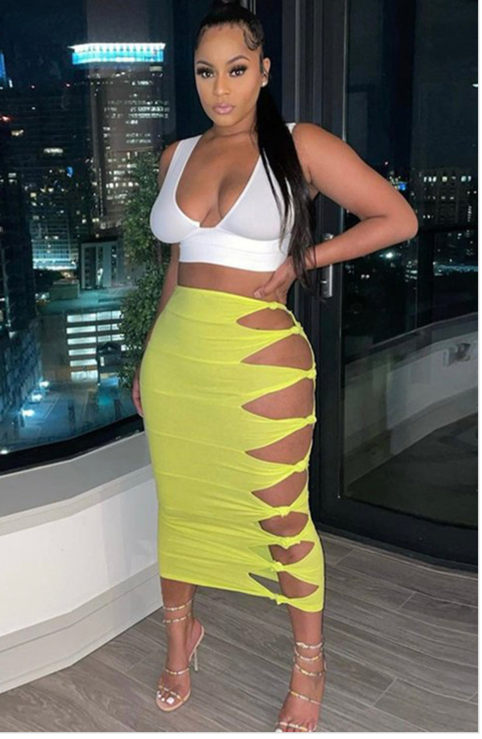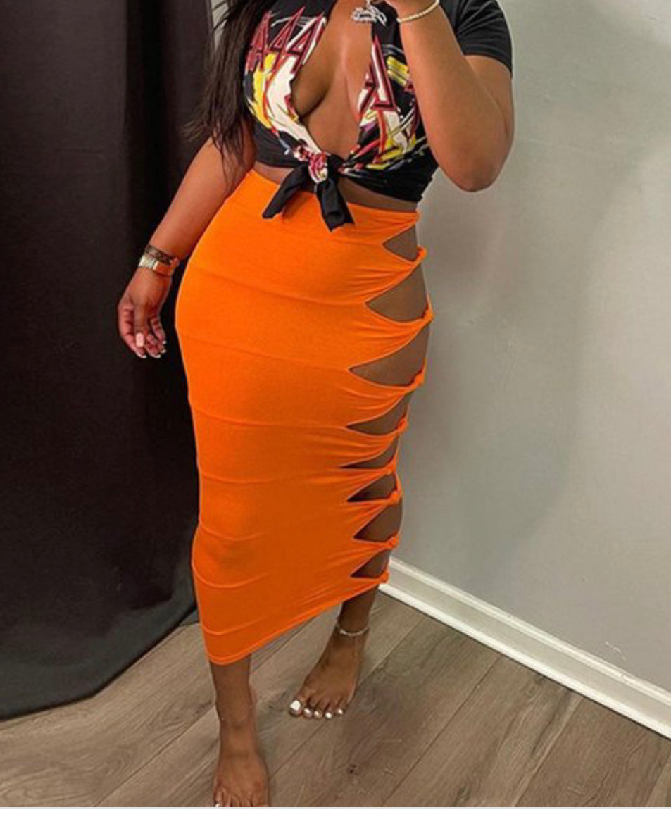 Style- tube skirt with cut-out knot tie detail