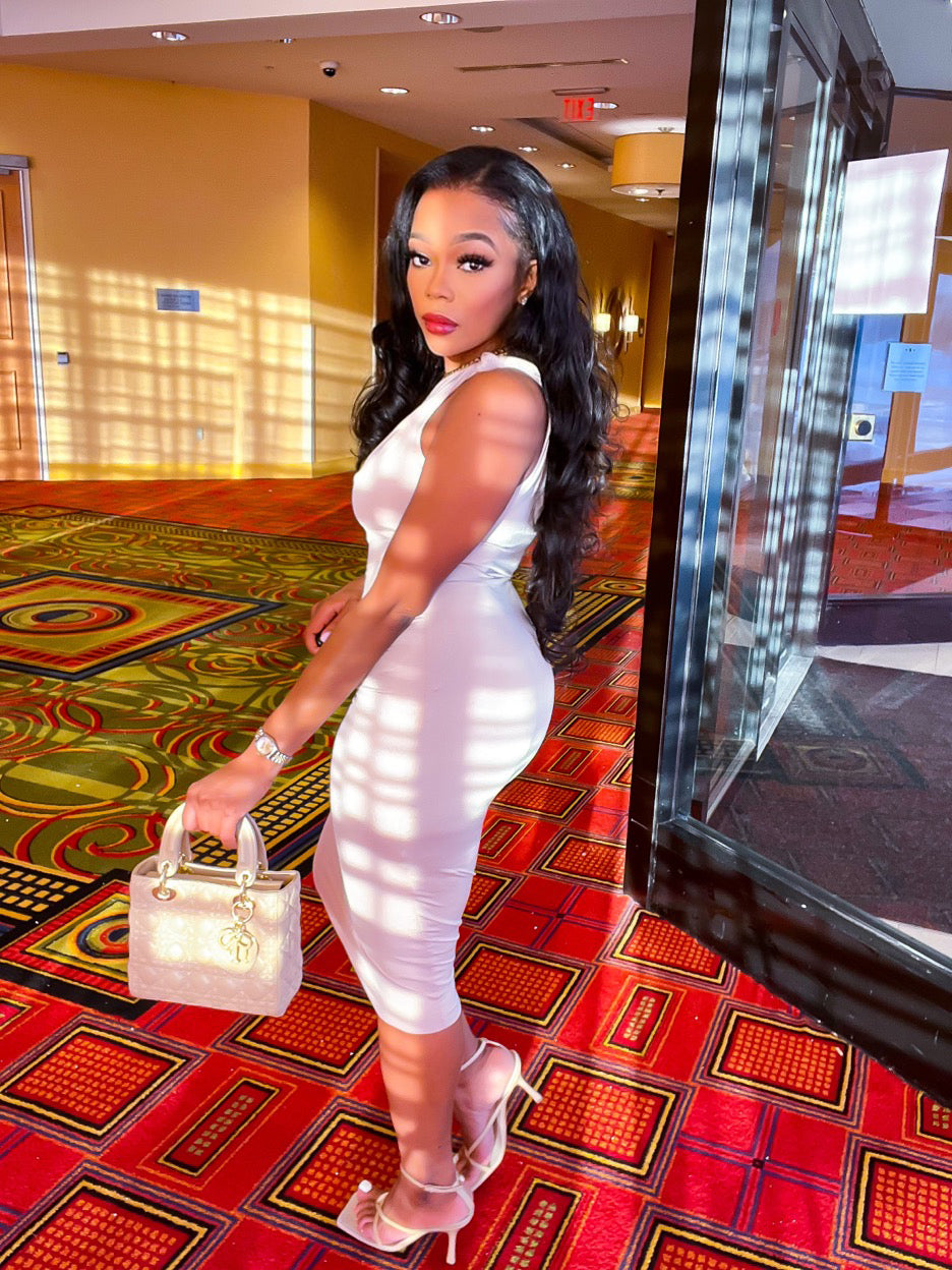 Sleek and sexy. This peek a boo knotted dress is a must have, this dress makes getting dressed and sexy effortless.